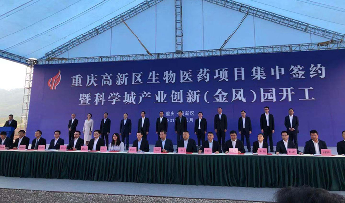 2019年10月12日,重慶高新區生物醫藥項目集中簽約暨科學城產業創新(金鳳)園開工活動在重慶高新區舉行。市委副書記、市長唐良智見證簽約并宣布科學城產業創新(金鳳)園開工。副市長、重慶高新區黨工委書記、市發展和改革委員會主任熊雪,中國科學院院士陳孝平出席活動。活動前,唐良智聽取重慶高新區產業發展、簽約項目、科學城新開工園區等情況介紹。